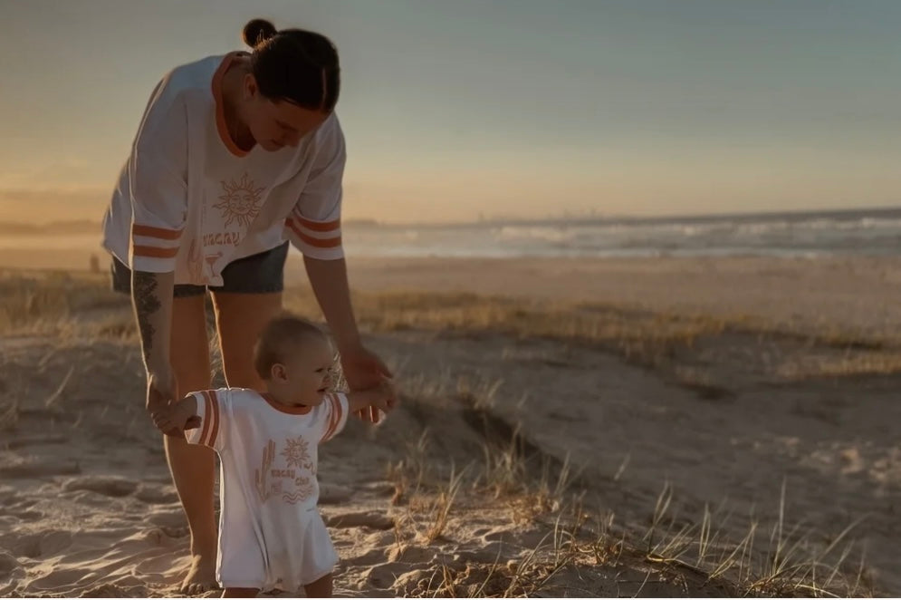 Bring those endless summer vibes to your little one’s wardrobe! Our Vacay T-Shirt Romper is made for sandy toes, sunshine play, and breezy beach days. Featuring our dreamy vacay sun print, this romper pairs perfectly with our kids’ tees and mumma tees so the whole crew can match in coastal style. Made from soft, breathable cotton with snap buttons for quick changes, it’s the ultimate outfit for holidays, staycays, and everything in between.